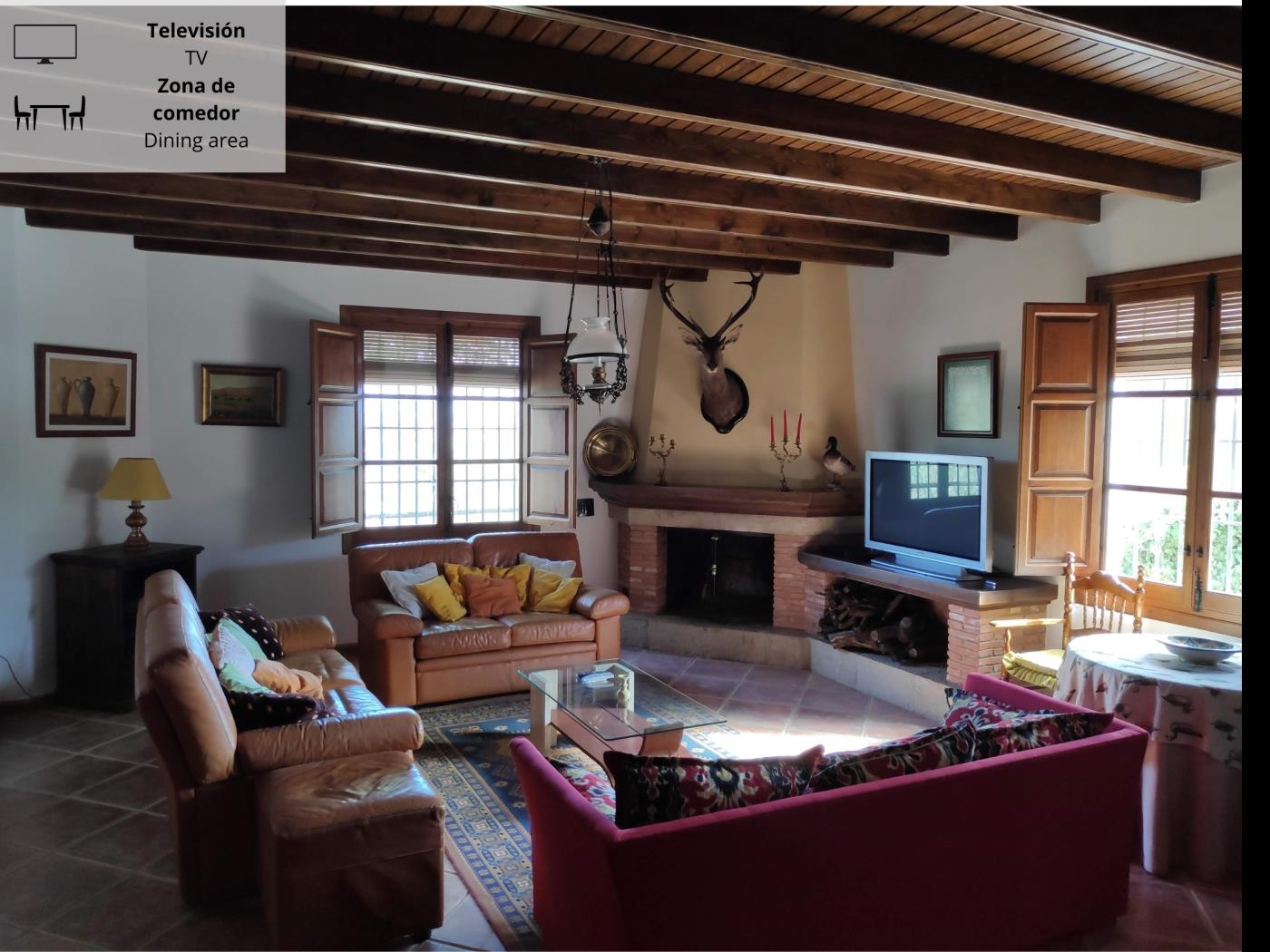 Gran cortijo situado en Villanueva del Rosario (Málaga), donde podrás disfrutar de unas bonitas vistas de la sierra malagueña así como de la tranquilidad de la naturaleza. El cortijo cuenta con 4 habitaciones, de las cuales dos de ellas tienen cama doble, además de tener cuatro camas individuales y un sofá cama. Tres baños con bañera, salón con TV y cocina totalmente equipada de electrodomésticos y menaje.